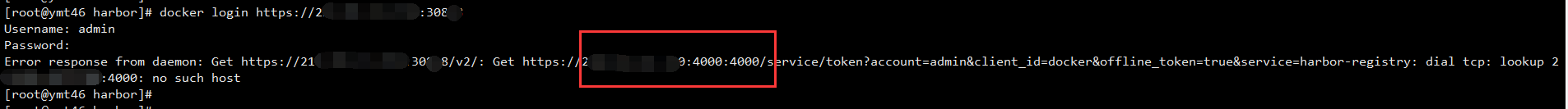 Error response from daemon: Get https://xx.xx.xx.xx:xxxx/v2/: Get https://xx.xx.xx.xx:xxxxx:xxxxx/service/token?account=admin&client_id=docker&offline_token=true&service=harbor-registry: dial tcp: lookup xx.xx.xx.xx:xxxx: no such host