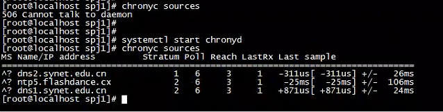 [root@localhost sysconfig]# chronyc sources //检查时间同步状态