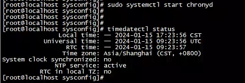 [root@localhost sysconfig]# systemctl start chronyd //启动时间服务器