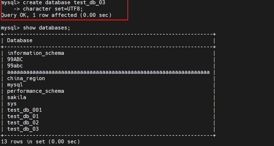 一、使用命令 CREATE DATABASE test_db_01 IF NOT EXISTS;