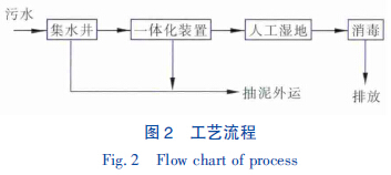 根据农村生活污水特点,采用集水井+PDS转鼓式一体化处理装置+人工湿地工艺,其具体工艺流程见图2。