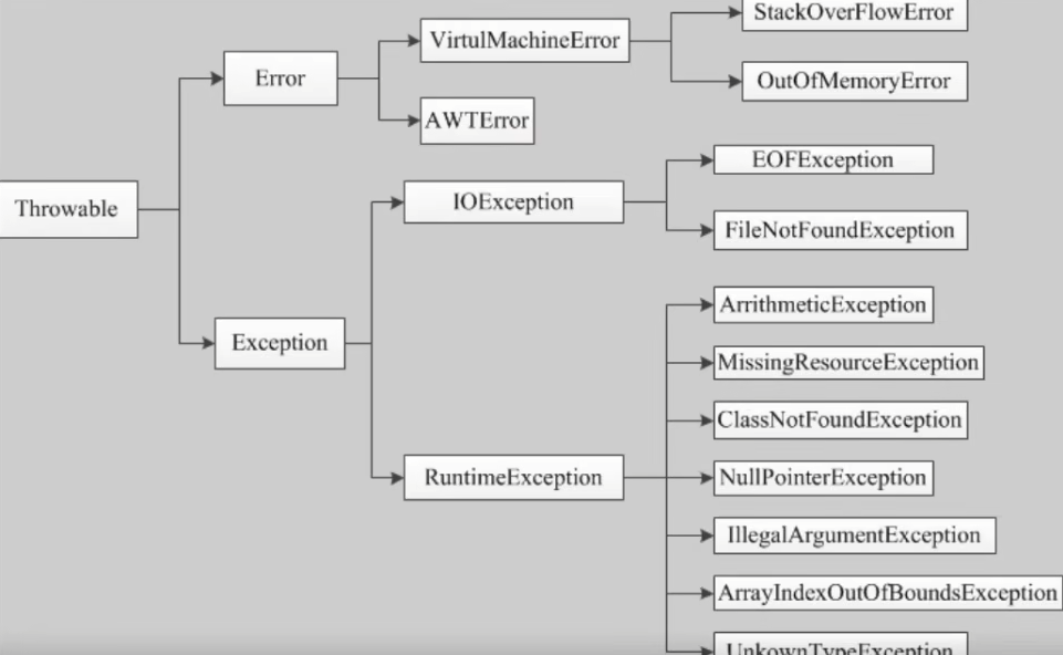 错误不是异常,而是脱离程序员控制的问题,错误在代码中通常被忽略,例如:当栈溢出时,一个错误就发生了,它们在编译检查时也是检查不到的