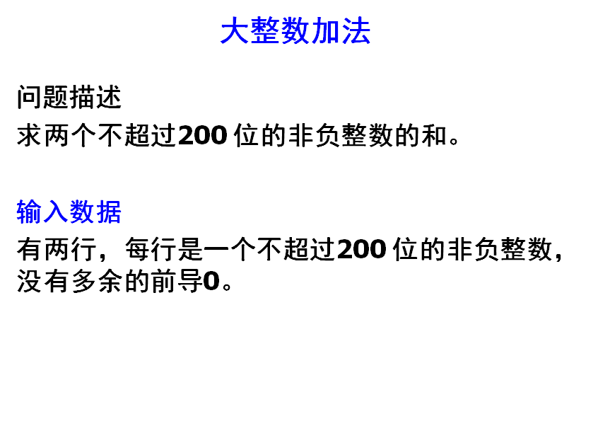例如,求两个20000位的数的和。这时,就要用到高精度算法了。
