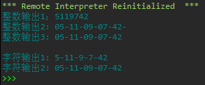 1 x = [5, 11, 9, 7, 42] 2 3 print('整数输出1:', end = '') 4 i = 0 5 while i < len(x): 6 print(x[i], end = '') 7 i += 1 8 9 print('\n整数输出2: ', end = '') 10 i = 0 11 while i < len(x): 12 print(f'{x[i]:02d}', end = '-') 13 i += 1 14 15 print('\n整数输出3: ', end = '') 16 i = 0 17 while i < len(x) - 1: 18 print(f'{x[i]:02d}', end = '-') 19 i += 1 20 print(f'{x[-1]:02d}') 21 22 print('\n字符输出1: ', end = '') 23 y1 = [] 24 i = 0 25 while i < len(x): 26 y1.append(str(x[i])) 27 i += 1 28 print('-'.join(y1)) 29 print('字符输出2: ', end = '') 30 y2 = [] 31 i = 0 32 while i < len(x): 33 y2.append( str(x[i]).zfill(2) ) 34 i += 1 35 print('-'.join(y2))