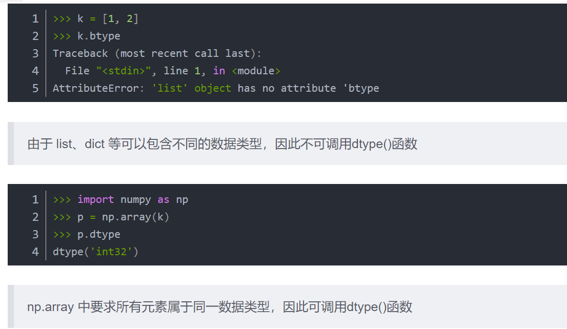 dtype返回数据元素的类型(int,float),用法为 array.dtype