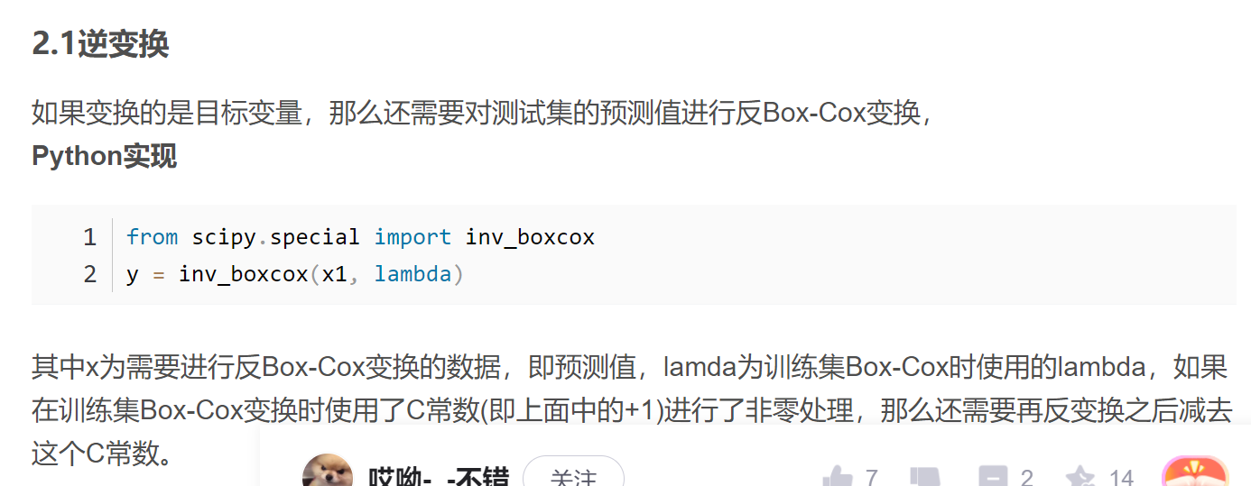 1 from scipy.special import inv_boxcox 2 y = inv_boxcox(x1, lambda)