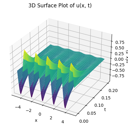 Let’s create our training data first. The sampling domain was set to be \((x,t)\in[-5,5]\times[0,0.2]\)