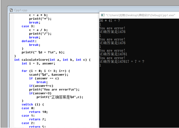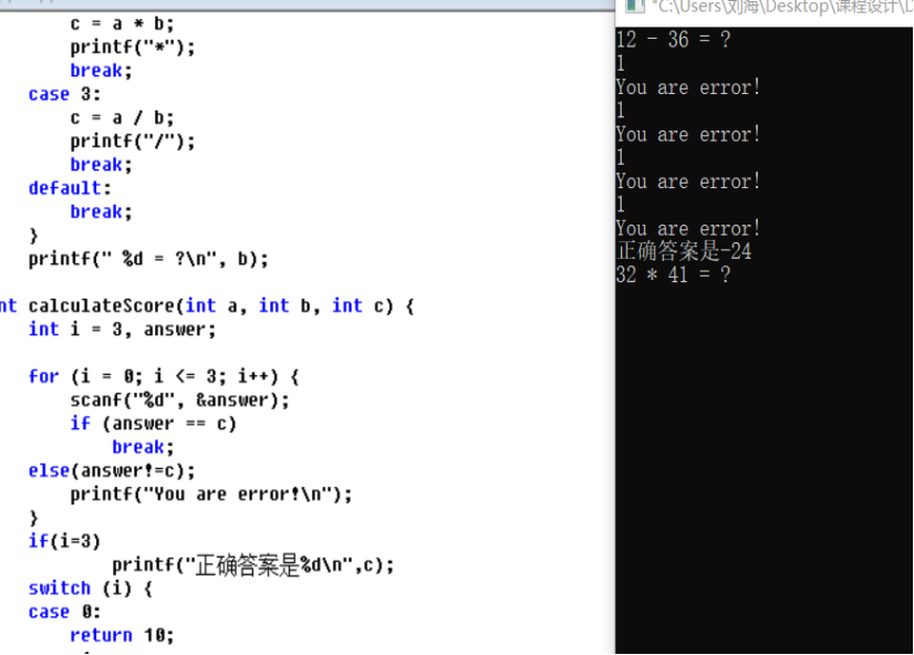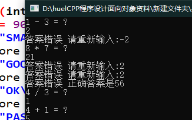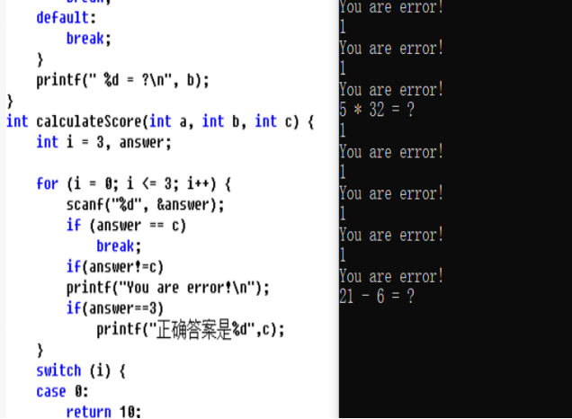 此时回答错误直接给出正确答案,没有给答题者改正的机会。但不能实现保存功能。因此还需要添加fprintf函数和文件指针。