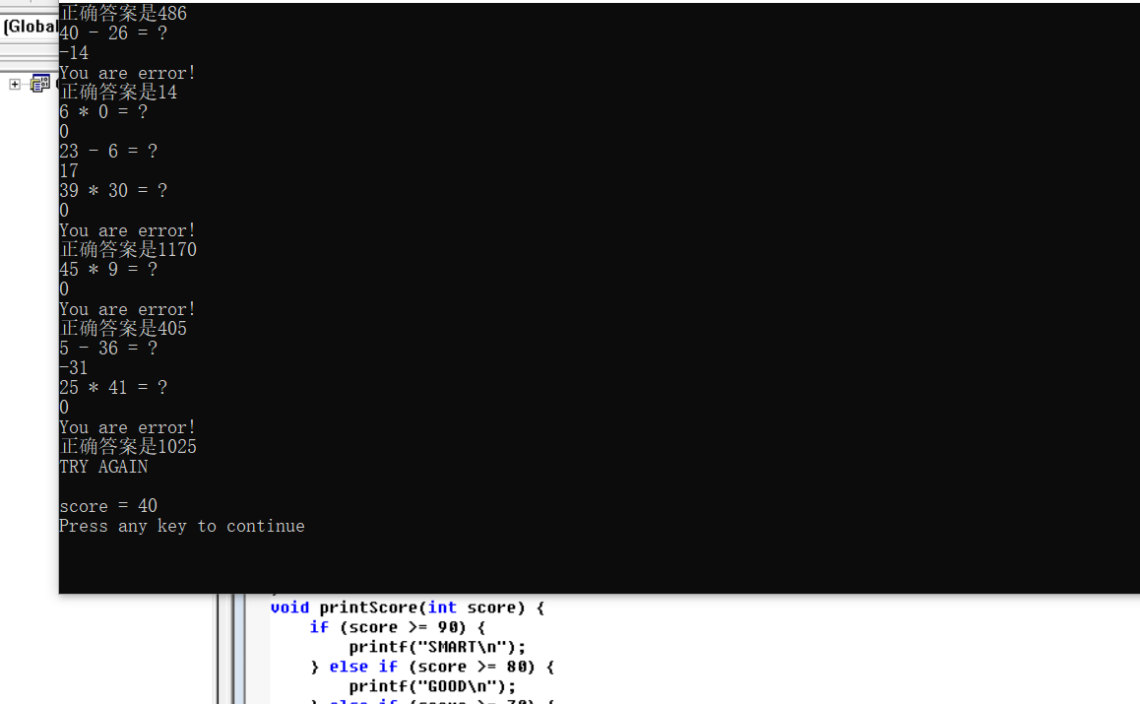 printf("\nscore = %d\n", score); //根据情况注释掉