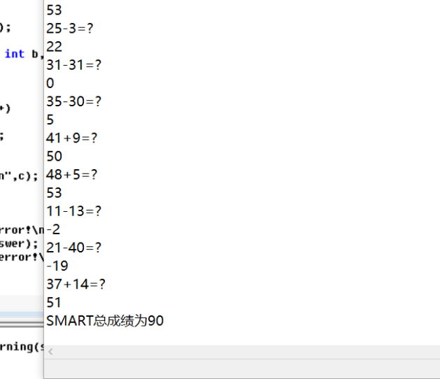 1、电脑随机出10道题,每题10分,程序结束时显示学生得分;