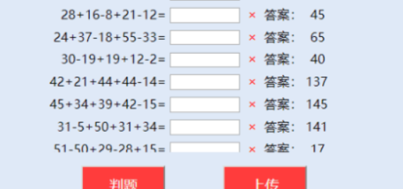 1.需求设计:获取生成的运算式,学生做题后点击判题进行判分;若答案正确,后面打钩,若答案错误,则打叉 并显示相应的正确结果。