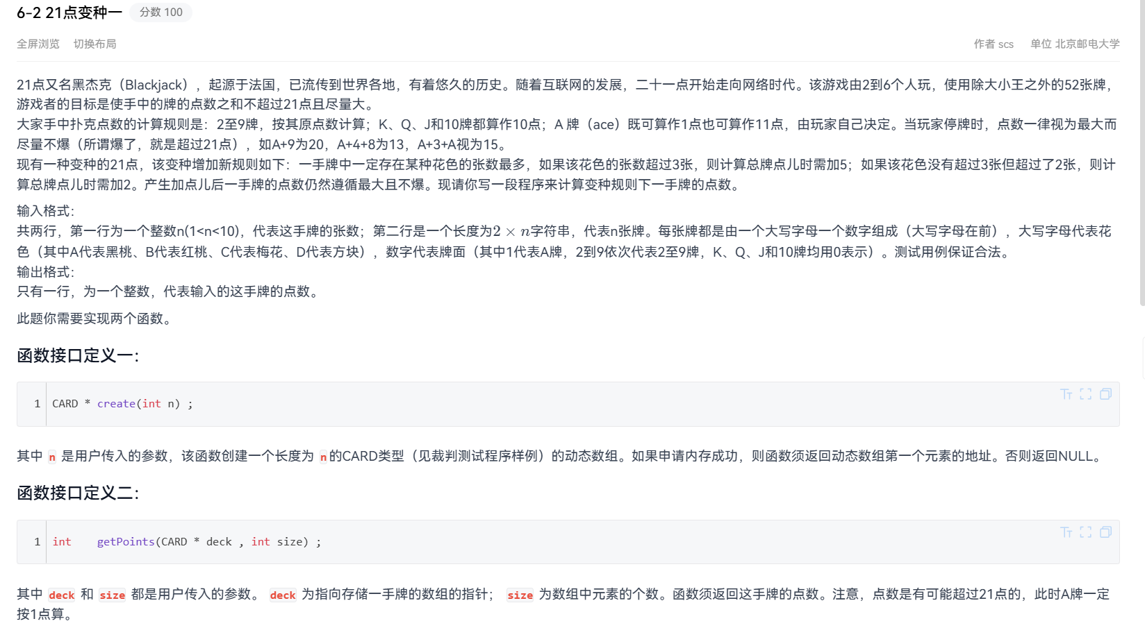- size 为数组中元素的个数。函数须返回这手牌的点数。