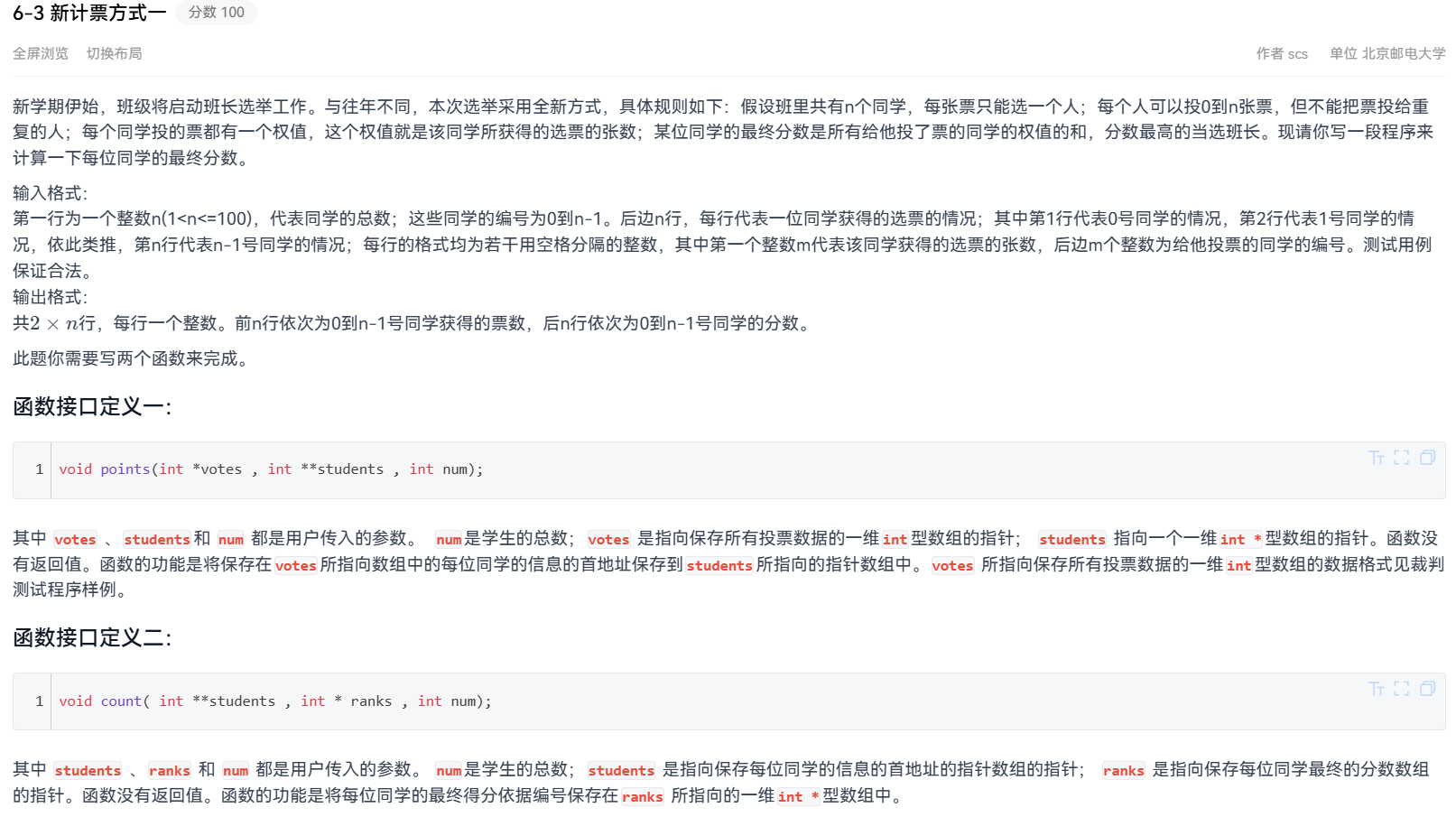votes 是指向保存所有投票数据的一维int型数组的指针