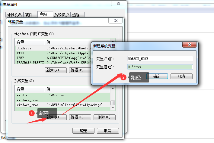 3、默认virtualenvwrapper的工作目录是"c:\users\用户名\Envs",我的用户名是zhjadmin;