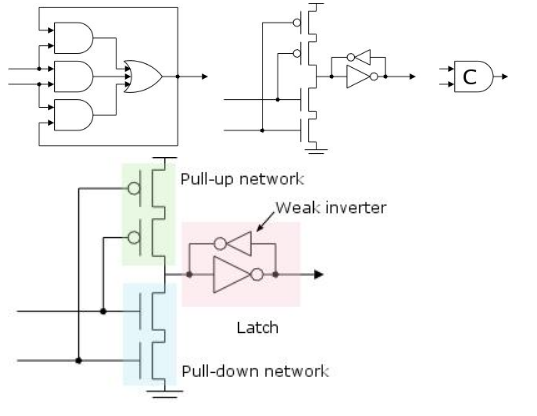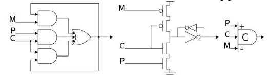 Muller C单元[1]是专门应用于异步设计的电路单元,由David E. Muller于1959年设计发明,其门级和晶体管级电路如下: