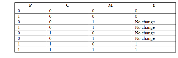 当输入C和P同时为1时,输出Y为1,当输入C和M同时为0时,输出Y才为0,其他情况下维持原输出值。