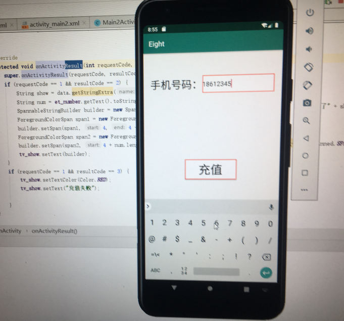 SpannableStringBuilder builder = new SpannableStringBuilder("您为号码" + num + "\n 充值了" + show + "钱");