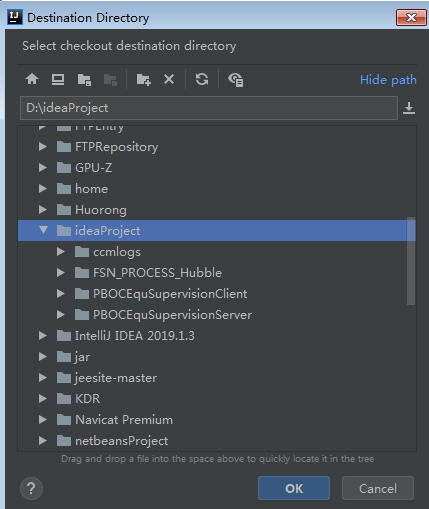 选择刚刚新建的资源库后点击checkout后提示选择一个文件夹存放svn项目,这里新建一个文件夹专门用来存放svn项目