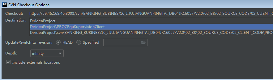 点击加号后填入项目svn地址就可以新建一个资源库了