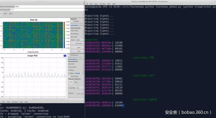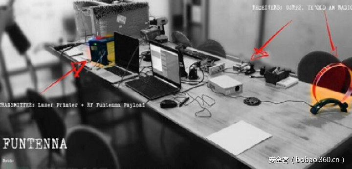 另外一种能够从物理隔离系统中窃取数据的方法是通过声波来实现的。在2015年Black Hat黑客大会上,安全研究人员展示了一种新型的黑客技术-“Funtenna”。 在Funtenna技术的帮助下,研究人员可以通过声波来窃取存储在物理隔离计算机中的数据。除了无需连网之外,这种技术还可以躲避网络流量监控和服务器防火墙等安全防护措施的检测。