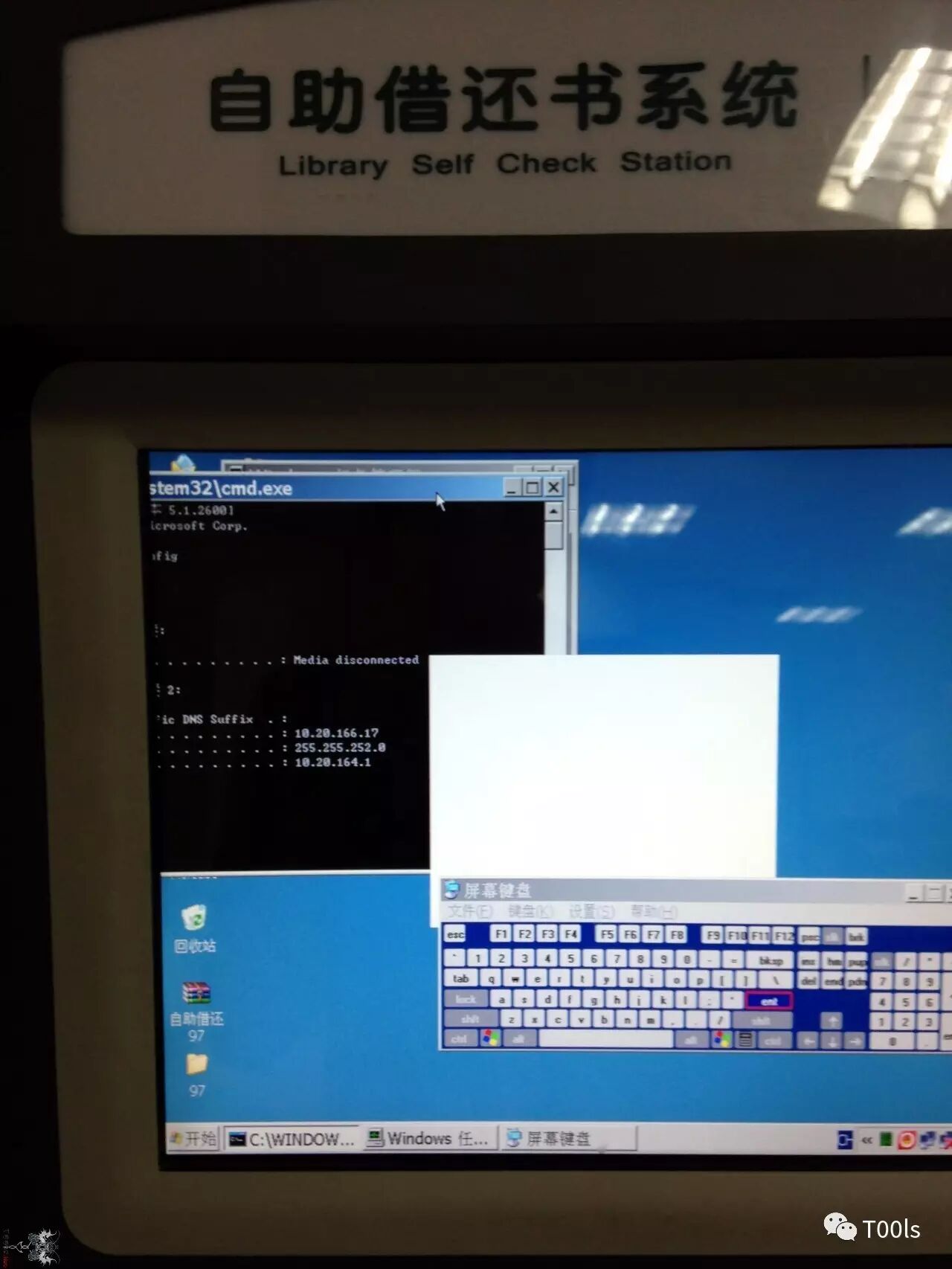 进入触屏界面后该如何操作?调出资源管理器,然后调出最基本的几个程序。进入c:\windows\system32\目录下。一般先打开osk.exe,此为屏幕键盘程序; taskmgr.exe任务管理器,用来结束相应的程序;cmd.exe用来执行命令。接下来判断所处的网络环境,进行进一步的内网渗透了。