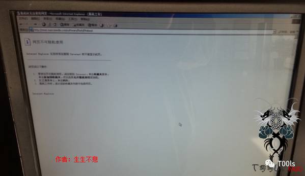 二、可以直接拔掉网线,程序有时会弹出错误提示,从而进一步操作进入终端机 三,可以在重新插拔电源后使系统重启,启动应用程序后继续切断电源,致使系统或程序文件丢失,报错,进入系统。此案例可以接触物理电源