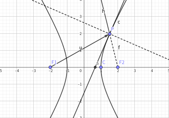 \(PS\) 角平分线身份可由 $ \dfrac{\overline{PF_1}}{\overline{PF_2}} = \dfrac{\overline{F_1S}}{\overline{F_2S}} $ 予以认可.
