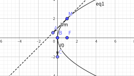 当抛物线开口朝右时, \(y^2 = 2px\),取 \(M(\dfrac{P}{2},p)\)