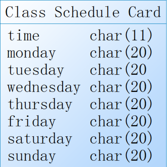 (1)每周课表: