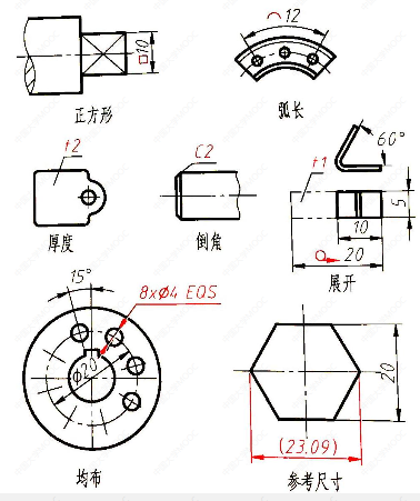 (1)定形尺寸:确定平面图形中各线段形状大小的尺寸。