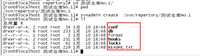 创建以后目录下面会出现conf db format hooks locks README.txt 文件
