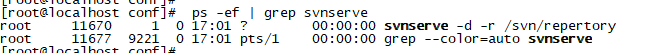 使用 ps -ef | grep svnserve 查看svn端口,是否启动