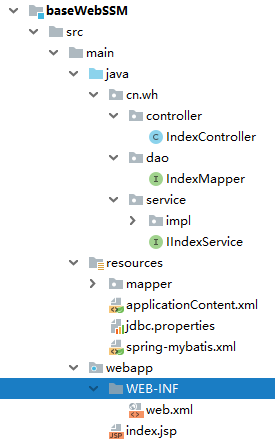 <?xml version="1.0" encoding="UTF-8"?> <beans xmlns="http://www.springframework.org/schema/beans" xmlns:xsi="http://www.w3.org/2001/XMLSchema-instance" xmlns:context="http://www.springframework.org/schema/context" xmlns:aop="http://www.springframework.org/schema/aop" xmlns:tx="http://www.springframework.org/schema/tx" xsi:schemaLocation="http://www.springframework.org/schema/beans http://www.springframework.org/schema/beans/spring-beans-3.0.xsd http://www.springframework.org/schema/context http://www.springframework.org/schema/context/spring-context-3.0.xsd http://www.springframework.org/schema/aop http://www.springframework.org/schema/aop/spring-aop-3.0.xsd http://www.springframework.org/schema/tx http://www.springframework.org/schema/tx/spring-tx-3.0.xsd "> <!-- 1.配置jdbc文件 --> <bean id="propertyConfigurer" class="org.springframework.beans.factory.config.PropertyPlaceholderConfigurer"> <property name="locations" value="classpath:jdbc.properties"/> </bean> <!-- 2.扫描的包路径,这里不扫描被@Controller注解的类 --><!--使用<context:component-scan/> 可以不在配置<context:annotation-config/> --> <context:component-scan base-package="cn.wh.service"> <context:exclude-filter type="annotation" expression="org.springframework.stereotype.Controller"/> </context:component-scan> <import resource="classpath:spring-mybatis.xml" /> </beans>