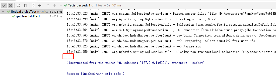 package cn.wh.service; import org.junit.Test; import org.junit.runner.RunWith; import org.springframework.beans.factory.annotation.Autowired; import org.springframework.test.context.ContextConfiguration; import org.springframework.test.context.junit4.SpringJUnit4ClassRunner; /** * 配置spring和junit整合,junit启动时加载springIOC容器 spring-test,junit */ @RunWith(SpringJUnit4ClassRunner.class) // 告诉junit spring配置文件 @ContextConfiguration({ "classpath:applicationContent.xml"}) public class IIndexServiceTest { @Autowired public IIndexService indexService; @Test public void getUserByIdTest(){ System.out.println(indexService.getUserCount()); } }