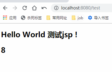 <%@ page contentType="text/html; charset=utf-8"%> <!doctype html> <html> <body> <h2>Hello World 测试jsp ! </h2> <h2>${count}</h2> </body> </html>