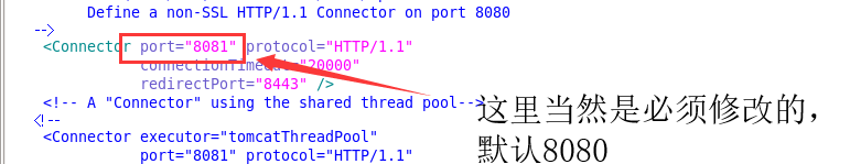 启动多个tomcat修改tomcat下的conf目录下的server.xml配置文件: