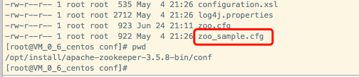 进入zookeeper目录下的conf文件夹,然后拷贝配置文件重命名