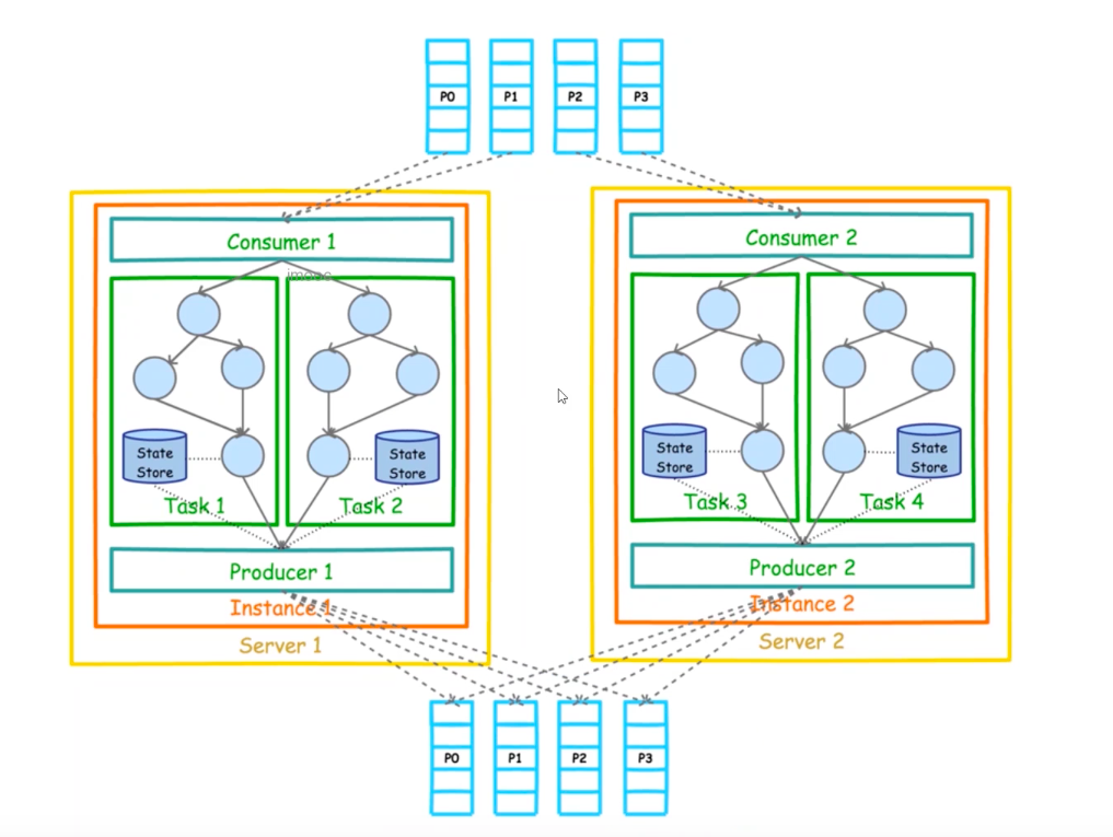 流处理器:如上图所示每个Task中的⭕️就是流处理器及处理消息的逻辑