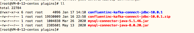 cd /opt/plugins/confluentinc-kafka-connect-jdbc-10.0.1/lib cp /opt/plugins/mysql-connector-java-*.jar ./