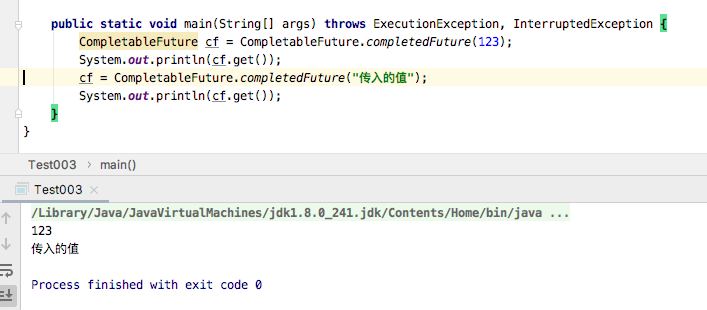 public static void join() throws ExecutionException, InterruptedException { Integer result = CompletableFuture.supplyAsync(()->{ return 1/1; }).join(); System.out.println(result); }