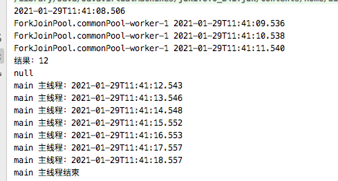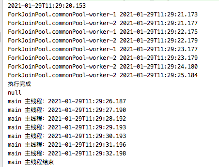 2021-01-29T11:10:03.053 ForkJoinPool.commonPool-worker-1 2021-01-29T11:10:04.078 ForkJoinPool.commonPool-worker-2 2021-01-29T11:10:04.078 ForkJoinPool.commonPool-worker-2 2021-01-29T11:10:05.079 ForkJoinPool.commonPool-worker-1 2021-01-29T11:10:05.079 ForkJoinPool.commonPool-worker-1 2021-01-29T11:10:06.084 ForkJoinPool.commonPool-worker-2 2021-01-29T11:10:06.084 1 null main 主线程:2021-01-29T11:10:07.085 ForkJoinPool.commonPool-worker-2 2021-01-29T11:10:07.085 ForkJoinPool.commonPool-worker-2 2021-01-29T11:10:08.085 main 主线程:2021-01-29T11:10:08.085 main 主线程:2021-01-29T11:10:09.087 main 主线程:2021-01-29T11:10:10.087 main 主线程:2021-01-29T11:10:11.090 main 主线程:2021-01-29T11:10:12.091 main 主线程:2021-01-29T11:10:13.092 main 主线程结束