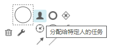 默认空圆圈代表已经发起请假流程,下一个需要添加 经理审批 ,鼠标移入圆圈点击右侧的人头分配给特定人的任务