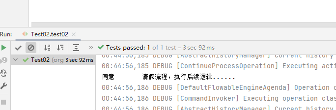 运行后可以看到因为approved给了true同意申请,日志打印了同意申请的Delegate服务任务