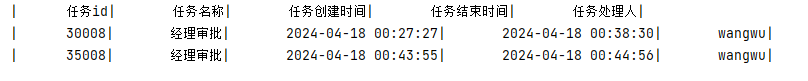 根据流程图,提交后的就需要wangwu审批,所以我们可以查询wangwu是否有待办任务