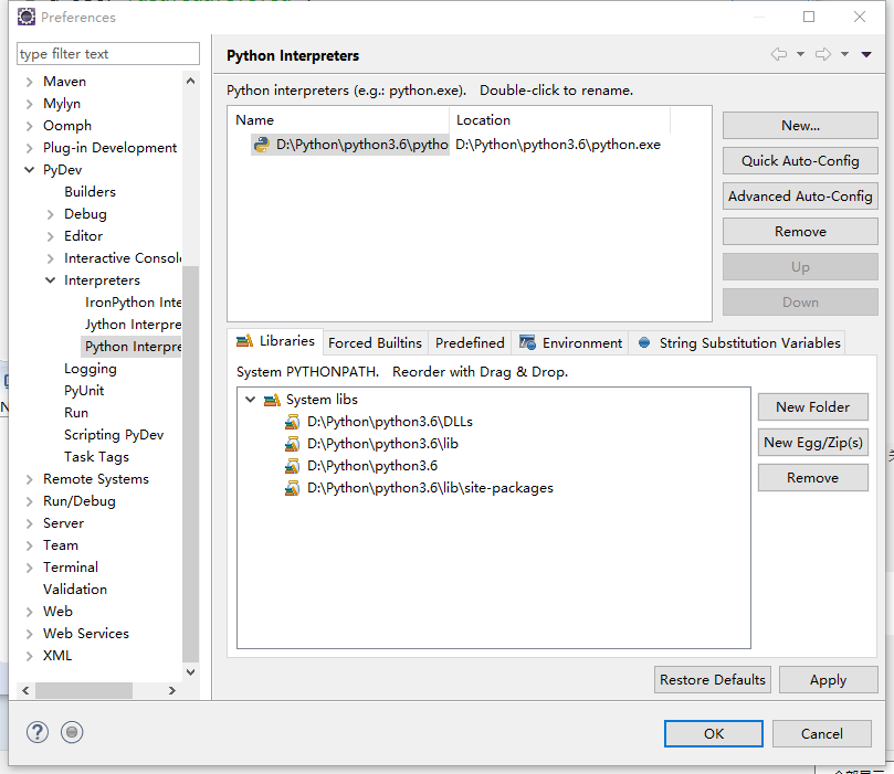 1、点击Windows-->Preferences,选择PyDev-->Interpreters-->Python Interpreter,如下图。