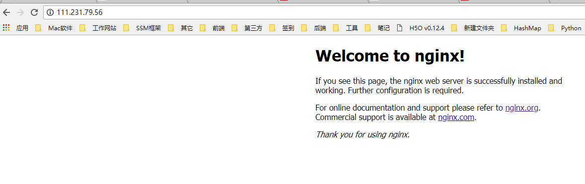 然后进行远程访问:因为默认是80端口,Nginx端口也是80,所以可以不用输入端口。出现Nginx欢迎的界面就证明安装成功。
