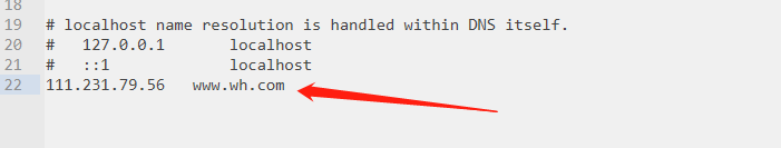 然后在本机的host文件中修改代理:把地址www.wh.com映射到111.231.79.56,然后访问:
