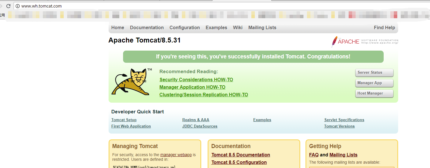 然后访问tomcat的网站,如下所示: