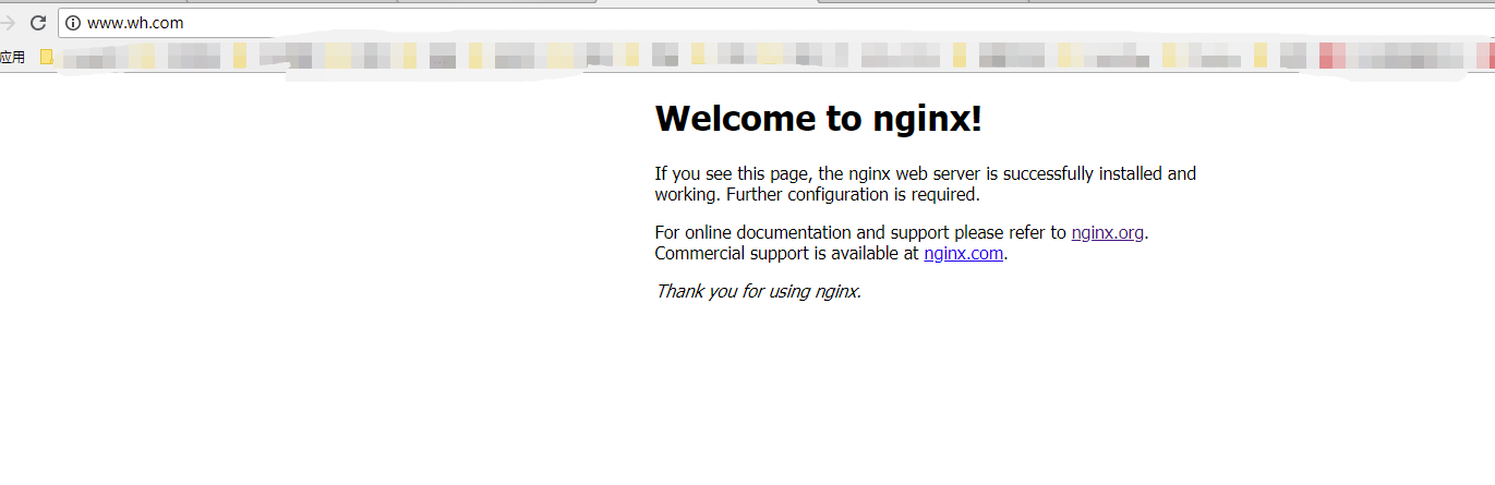然后新建文件,配置nginx映射,在vhost下面新建了一个配置文件,如下配置,把www.wh.com映射到nginx欢迎页面,然后启动Nginx: