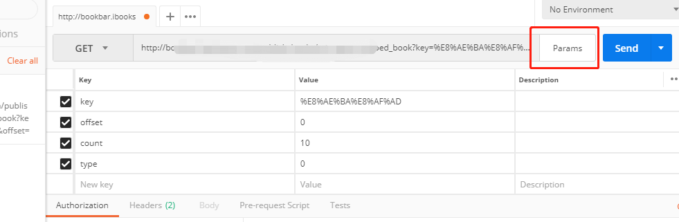 可以直接路径拼接参数,也可以选择Url后面的Params,然后进行参数填写,实时更新到Url上面。